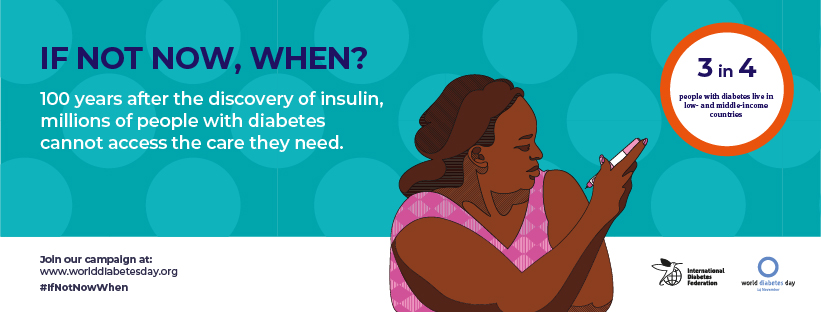 The theme for World Diabetes Day 2021 is Access to Diabetes Care – If Not Now, When? Millions of people living with diabetes around the world do not have adequate access to diabetes care. Through the World Diabetes Day campaign, we can shine a light on the importance of access to diabetes care, including medicine, diabetes technologies, education and support, and the need for increased government investment in diabetes care and prevention.