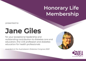 Congratulations to Jane Giles for receiving the ADEA Honorary Life Membership Award 2023 to recognise her exceptional leadership and outstanding contribution to diabetes care and education and the CDE profession.